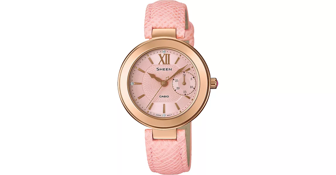 產品說明 CASIO SHEEN 夢幻宴會晶鑽時尚腕錶-SHE-3055SG-7AUDR 原廠公司貨施華洛世奇水晶點綴珍珠貝錶盤型號:SHE-3055SG-7AUDR SHE-3055/3057系列為三盤六針設計。彩色施華洛世奇水晶點綴刻度,營造精緻優雅感。 ◆品牌:CASIO SHEEN◆型號:SHE-3055SG-7AUDR◆機芯:石英機芯,動力:電池。◆材質:不鏽鋼錶殼、不鏽鋼錶帶、礦物玻璃鏡面。◆尺寸:錶殼約37MM(不含錶耳)/厚約7MM、鏡面直徑約29MM。◆錶帶:長約20CM/寬約15MM、重量約83G。◆功能:日常生活防水、日期/星期顯示、24小時顯示。◆配件:公司貨,保固1年。附原廠精緻包裝、原廠保證卡(書)。※商品圖檔顏色因電腦螢幕設定差異會略有不同,以實際商品顏色為準。※注意事項:游泳或洗澡時請勿配戴,以維持其正常防水功能。 |